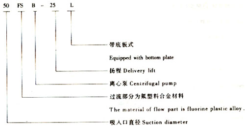 4、性能范围与型号说明:FSB型和FSB-L型系列耐腐蚀泵,流量范围1.5-100m3/时,