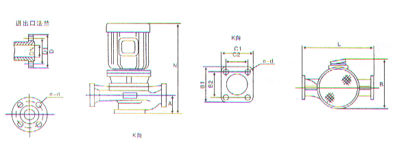 1、泵为立式结构,进出口径相同,且位于同一中心线上,可像阀门一样安装于管路之中,外形紧凑美观,占地面积小,建筑投入低,如加上防护罩可置于户外使用。
