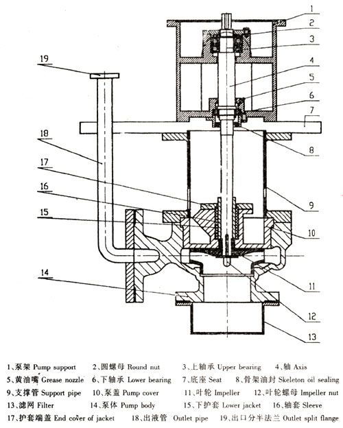 根据所输送介质的不同、FY(HY)系列立式液下泵接触液体部分的材质可选用304、304L、316、316L铸钢、铸铁等材料制造。